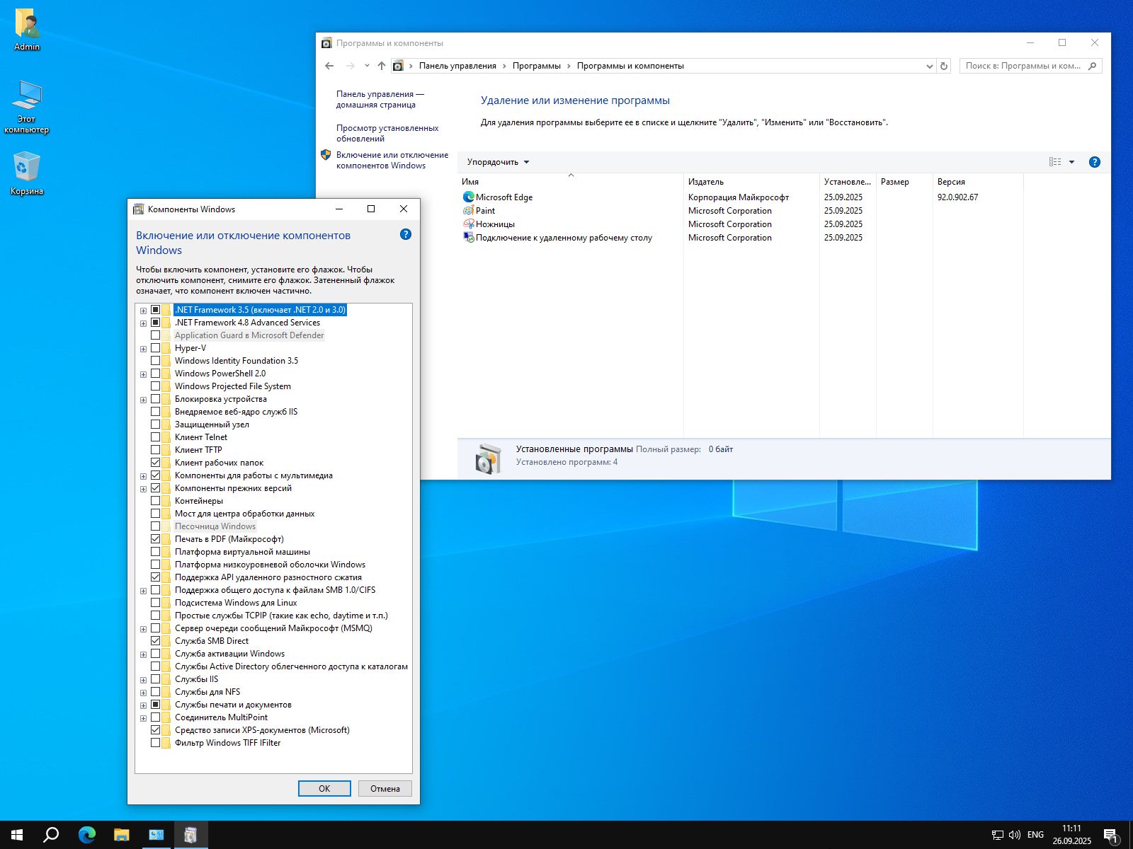 • Все версии .Net Framework от 2.0 до 3.5. Самая свежая редакция так же присутствует. Благодаря этому в систему можно устанавливать как современный софт, так и устаревшие игры.