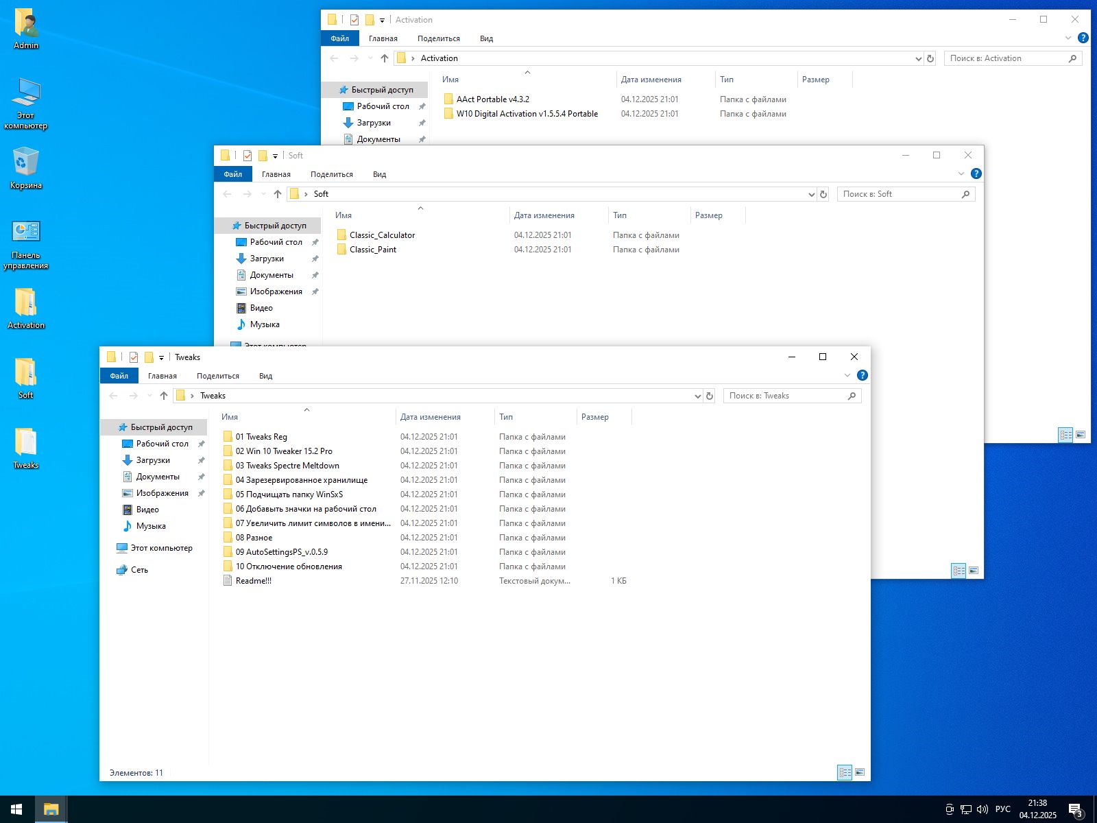 Облегченная сборка Виндовс 10 Pro 64 бит 22H2 без хлама станет оптимальным решением для тех, кто собирается выжать из своего железа все возможное. В системе отсутствует Защитник, предустановленные приложения, Кортана и прочие бесполезные компоненты. Добавлены финальные обновления по Октябрь 2025 года. Это последние апдейты для Десятки, так как Microsoft прекратила поддержку данного семейства ОС. В связи с этим рекомендуется перевести ЦО в ручной режим или полностью отключить службу посредством утилиты Toggle Updates (маленькая портативная программка, которую легко найти в интернете). Вместе с этим интегрированы системные библиотеки .Net Framework от версии 2.0. Они предназначены для обеспечения возможности запуска старых программ и игр. Так что если вам нужен устаревший софт или игры времен нулевых, данная редакция предоставит вам возможность ими пользоваться. Больше не придется искать способы запустить любимую игрушку из детства – все уже работает из коробки. Вместо Фотографий задействовано средство просмотра изображений PhotoViewer. Которое открывается мгновенно и не грузит систему. Также вам будет доступен классический калькулятор, который многие помнят еще с семерки. Привычный интерфейс и быстрый отклик делают его удобнее современного аналога. Скачать чистую Windows 10 Pro 22H2 64 бит - быстрая установка и активация на русском через торрент или прямой ссылкой можно с полной уверенностью в работоспособности. ОС не была в аудите, все изменения вносились при помощи штатных инструментов DISM. Это гарантирует стабильность и отсутствие конфликтов при установке драйверов или программ. В состав образа входят альтернативные темы. Применять их можно без костылей в виде патчеров – загружены из Магазина. Есть интересные обои для экрана блокировки, что тоже позволяет разнообразить интерфейс. Можете настроить внешний вид под себя буквально за минуту. Встроена прога для очистки локального накопителя Cleanmgr++. Удаляет лишний мусор, не затрагивая реестр. Рекомендуем запускать регулярно раз в неделю, а в первый раз – сразу после первого запуска ОС. Так вы освободите пару гигабайт и система будет летать еще быстрее. Оптимизация позволила повысить производительность за счет минимизации фоновых процессов. Все ресурсы оперативки, процессора и GPU направляются на обработку поставленных пользователем задач. Прирост скорости особенно заметен на слабых машинах – игры идут плавнее, программы открываются быстрее.