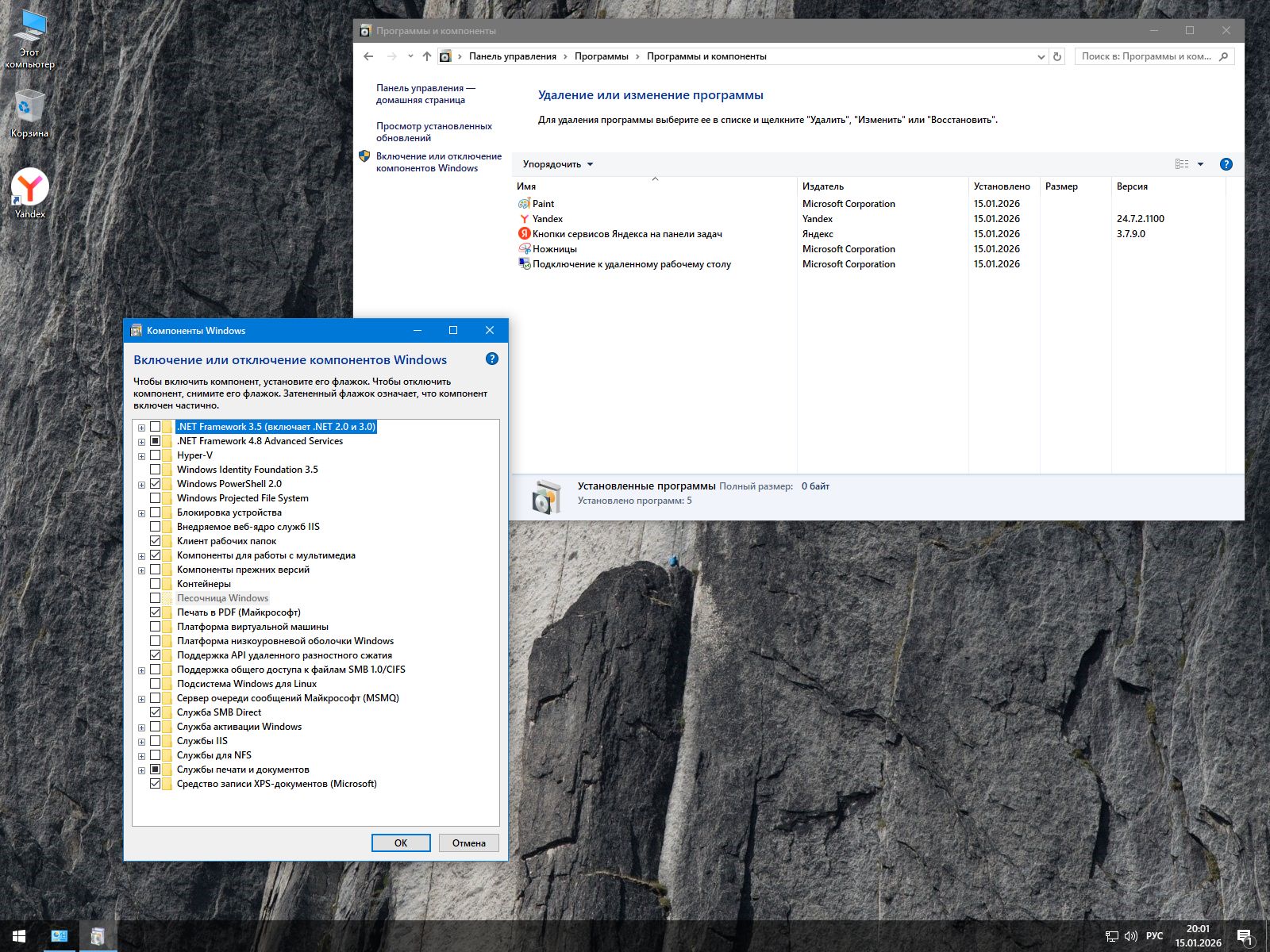 | Также удалены | Edge браузер, Steps Recorder, облачная синхронизация |