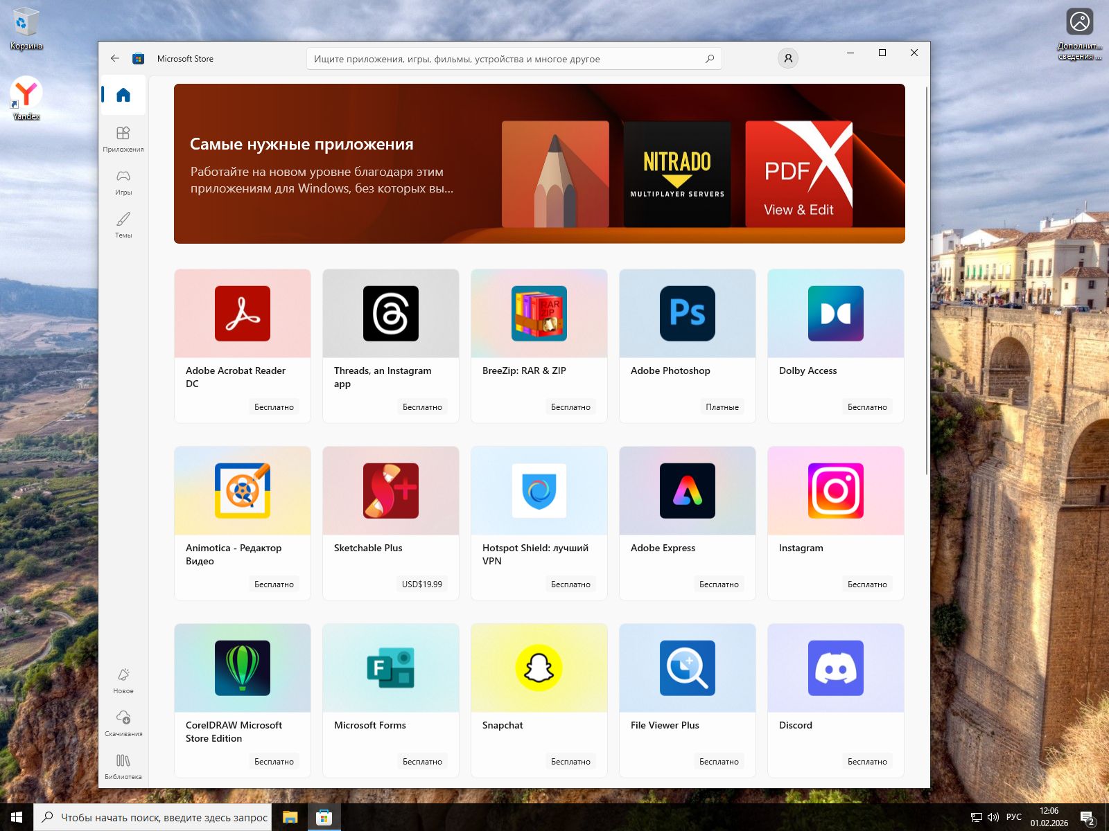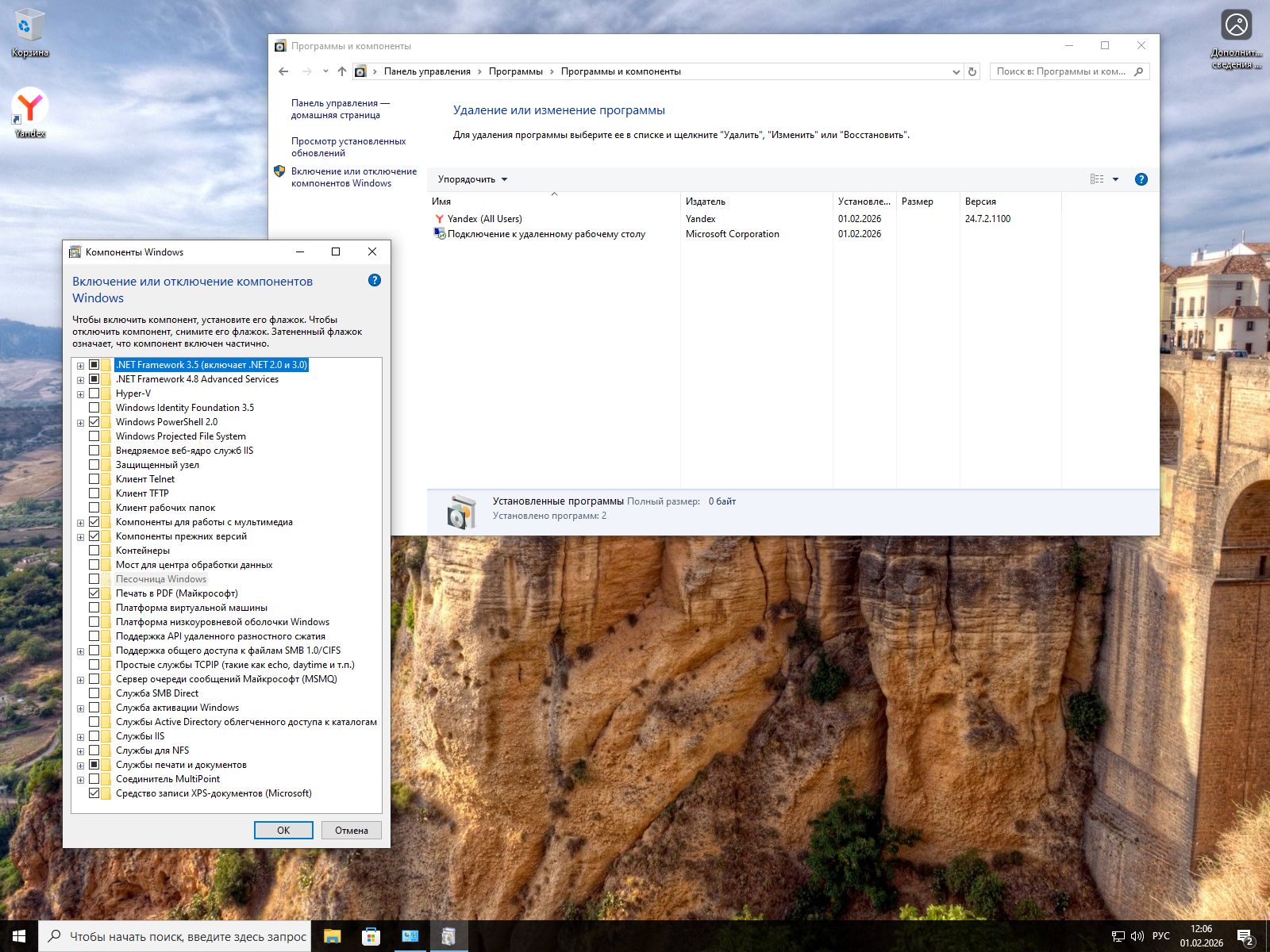 Несмотря на масштабные удаления, автор позаботился о нужных элементах. В образ интегрирован Windows Media Player для воспроизведения музыки и видео, Direct Play для запуска старых игр и .NET Framework 3.5 – критически важная библиотека для работы множества программ. Из дополнительного софта предустановлен Яндекс Браузер – популярный браузер для комфортного серфинга в интернете сразу после установки.