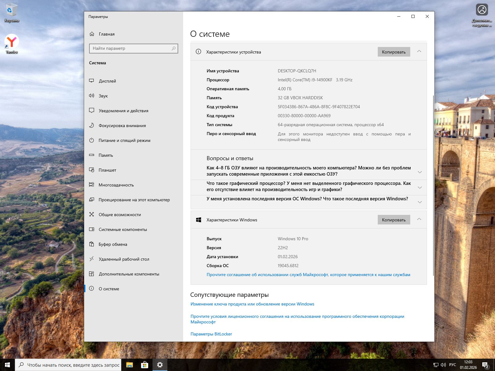 Чистая система Виндовс 10 22H2 Профессиональная x64 Январь 2026 - 19045.6812