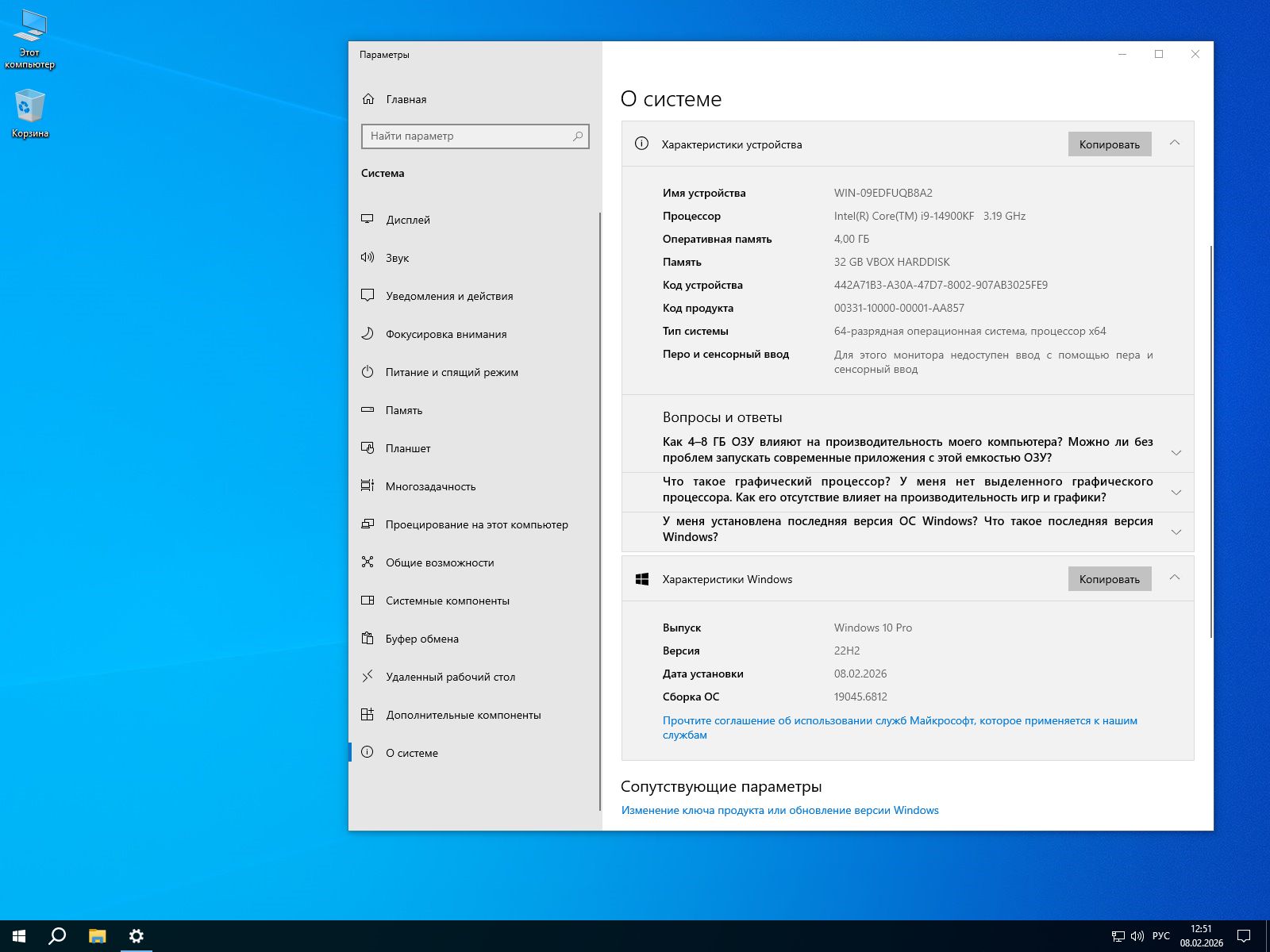 - Версия:19045.6812 - Windows 10 x64 22Н2 (3in1) 02.2026