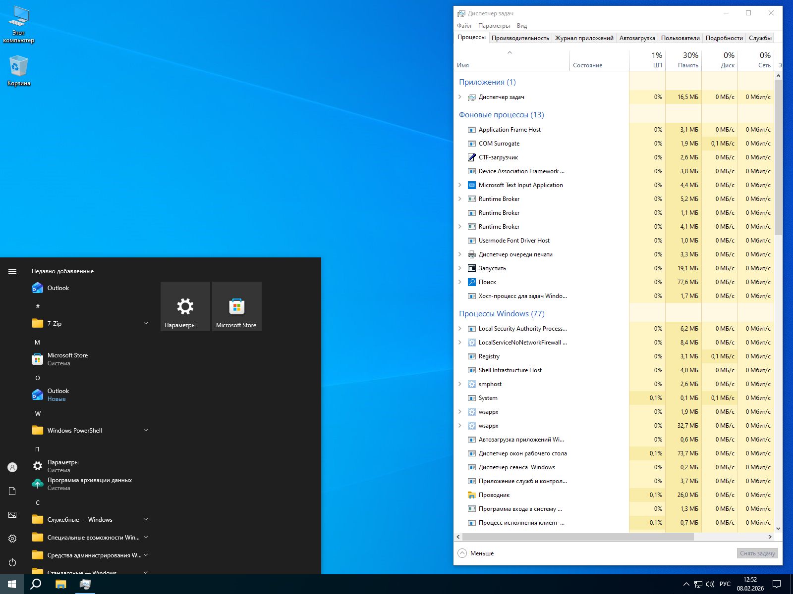 | Магазин (Microsoft Store) | Отсутствует, восстановить можно через команду wsreset -i при включенном интернете в PowerShell от имени администратора |