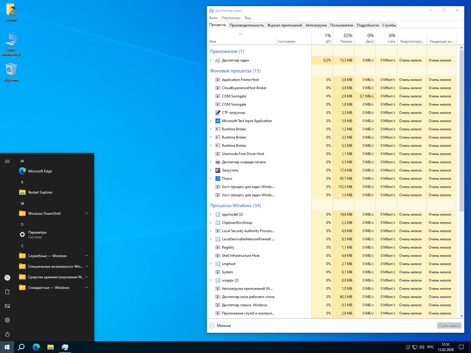 | Магазин (Microsoft Store) | Вырезан, восстановить можно через команду wsreset -i при включенном интернете в PowerShell от имени администратора |