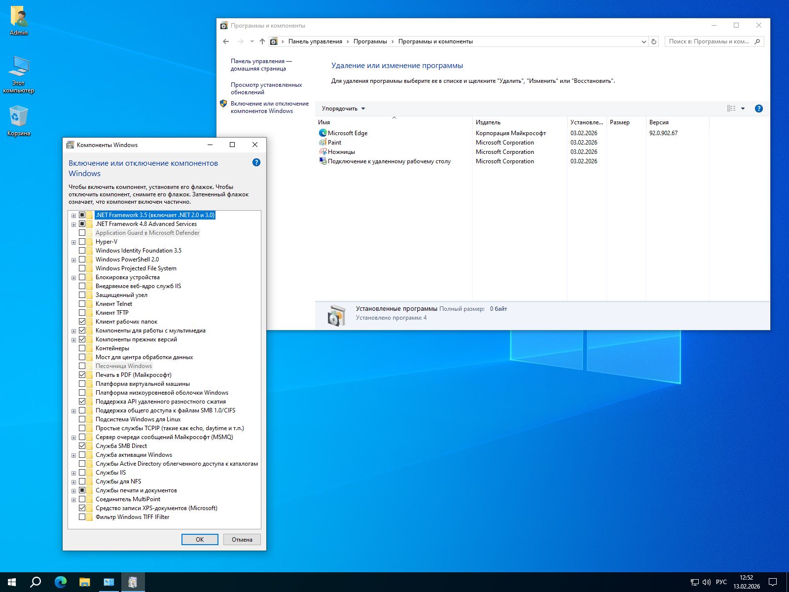 • .NET Framework 3.5 для совместимости со старым ПО.