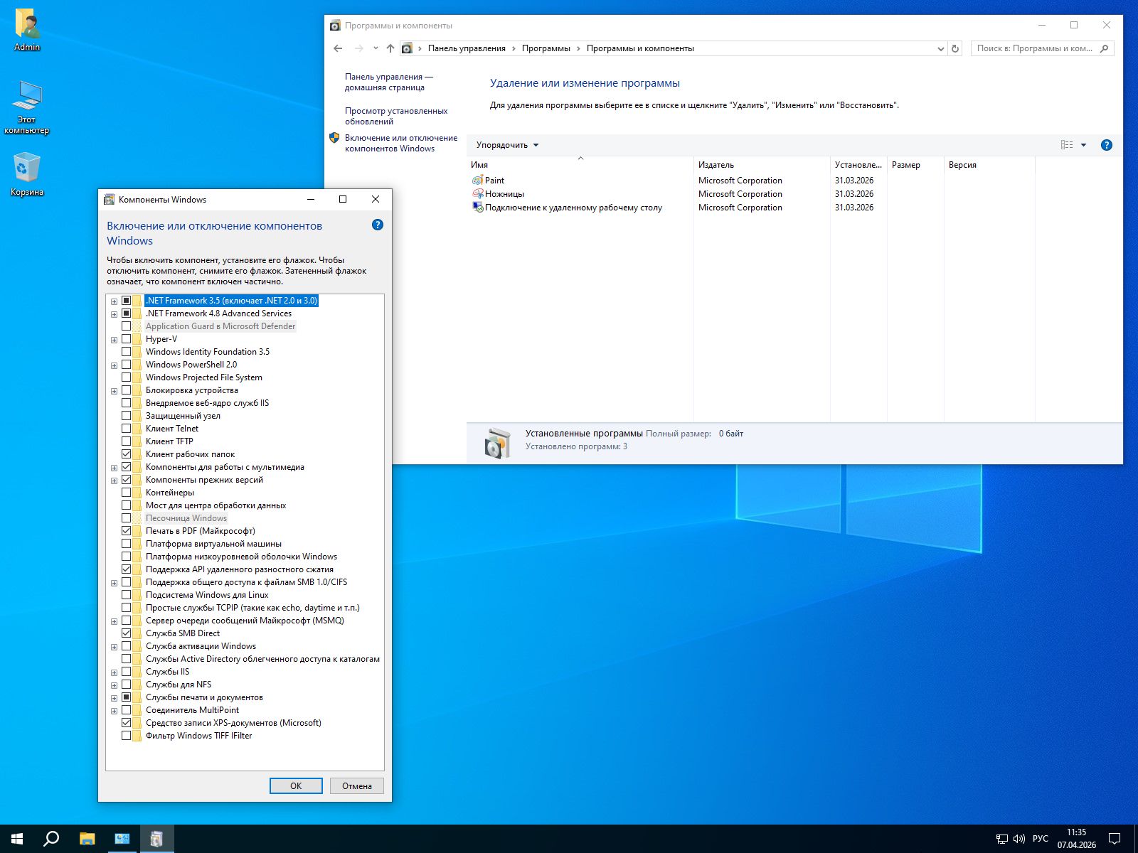 • .NET Framework 3.5 (включая 2.0 и 3.0) — нужен некоторым играм и старым приложениям.
