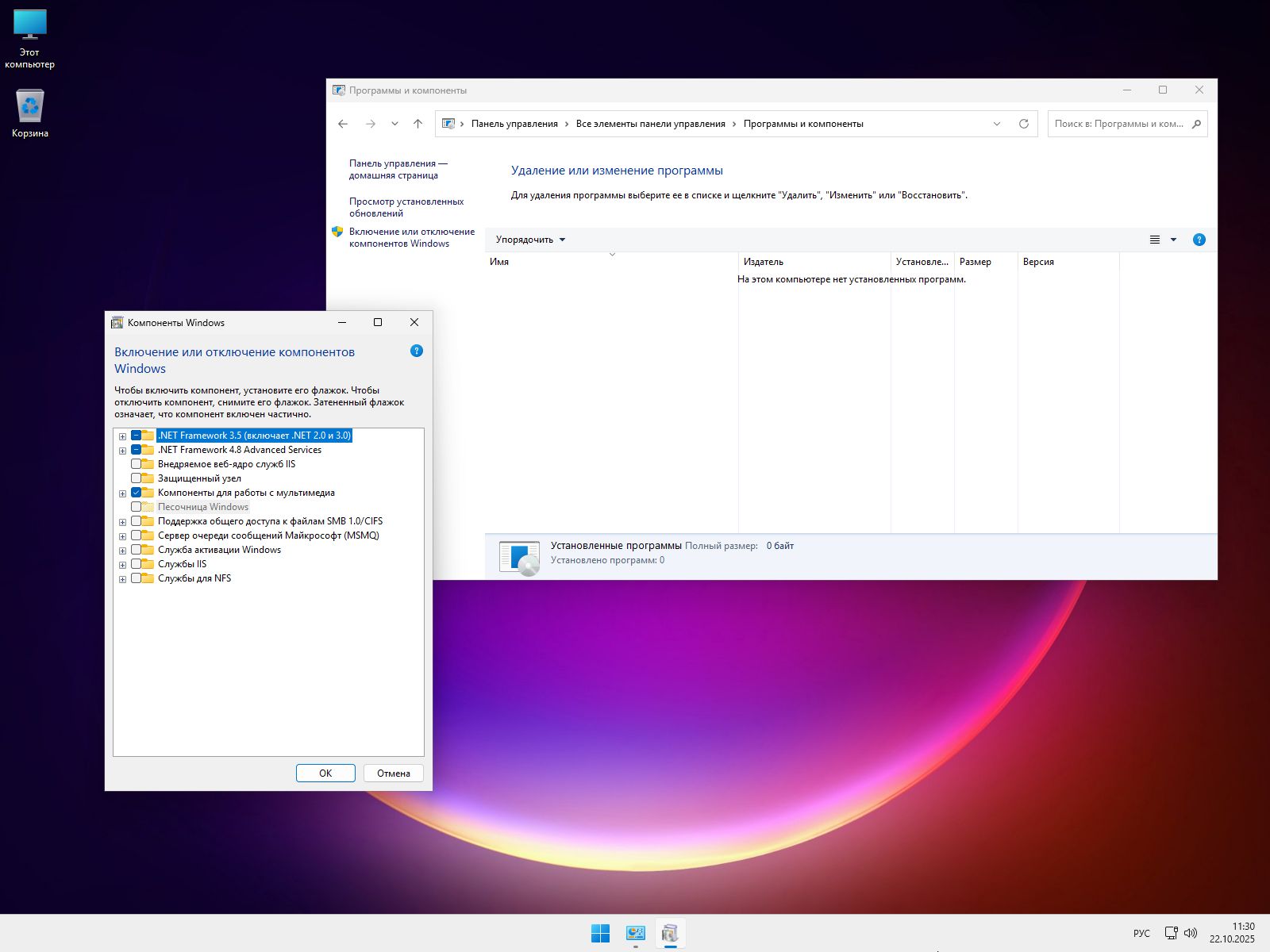 Облегченная сборка без Защитника Windows 11 Про x64 25H2 стабильная версия по факту займет меньше, чем требуемые 64 Гб после установки. Для этого автор очистил ОС от всех предустановленных приложений. Они занимают много места и постоянно обновляются, увеличиваясь в объеме. Но это не единственная причина их удаления. Большинство плиток никогда не закрывается полностью, продолжая работать в фоне. В результате нагрузка на ресурсы компа возрастает и система начинает тормозить. Предустановленные приложения часто дублируют функционал, который уже реализован в основных компонентах операционной системы. Их наличие создает ненужную конкуренцию за системные ресурсы и запутывает пользователя обилием похожих инструментов. Удаление позволяет оставить только то, что действительно необходимо для стабильной работы.