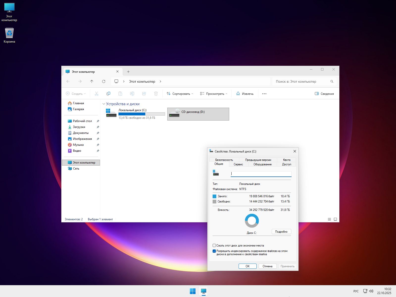 Большинство пользователей предпочитает выбирать быстрые сборки Windows 11 Про x64 25H2 в которых отсутствует лишний хлам. Мы предлагаем одну из таких облегченных версий, которая обеспечивает высокую производительность на слабом железе. Благодаря оптимизации система не тормозит даже на минимальных параметрах. При необходимости вы можете вернуть определенные удаленные элементы, однако мы не рекомендуем этим заниматься. ОС полностью настроена на высокую производительность, но любые изменения могут привести к снижению быстродействия. Особенно это касается обновлений, так что автор удалил ЦО, чтобы ничего лишнего в Виндовс 11 не попадало. Это решение позволяет сохранить стабильность системы и избежать неожиданных перезагрузок во время критичных операций. Контроль над процессом обновления остается полностью в ваших руках, что дает возможность выбирать оптимальное время для установки исправлений безопасности. Для снижения веса образа установочный файл сжат в .esd формат. Не стоит переживать по данному поводу – негативных эффектов в ходе установки не отмечается. Самое главное – правильно создать загрузочное устройство под конфигурацию своего компа. Скачать Виндовс 11 Pro x64 25H2 облегченная сборка без Защитника - 26200.6584 через торрент или прямой ссылкой iso образ на компьютер. Встроенный Защитник не может гарантировать безопасность от вредоносного ПО, так что лучше ставить стороннюю программу. Defender перегружает даже мощное железо, не говоря уже о слабых ПК или ноутбука. Его встроенные алгоритмы работают постоянно в фоне, перехватывая системные ресурсы и замедляя отклик приложений. Еще один минус – блокировка активаторов и патчей, независимо от того, добавлены ли они в исключения. Если не хотите повышать нагрузку на комп, можно в принципе обходиться без подобных инструментов – достаточно периодически проверять наличие вирусов с помощью Eset Online Scanner или аналогичных облачных решений, которые не требуют установки на диск и не влияют на общую производительность системы. Вырезан сетевой экран Smart Screen. Он мешает комфортному веб-серфингу и не блокирует действительно опасные сайты. Частые всплывающие предупреждения о якобы опасном контенте часто игнорируются пользователями, что снижает их эффективность. Замена на более гибкие решения типа встроенных возможностей браузера позволяет получить лучший баланс между удобством и защитой. Облеченная версия Виндовс 11 64 бит 25H2 Профессиональная весит 3.1 Гб что достаточно компактно и помещается на 4 Гб флешку.