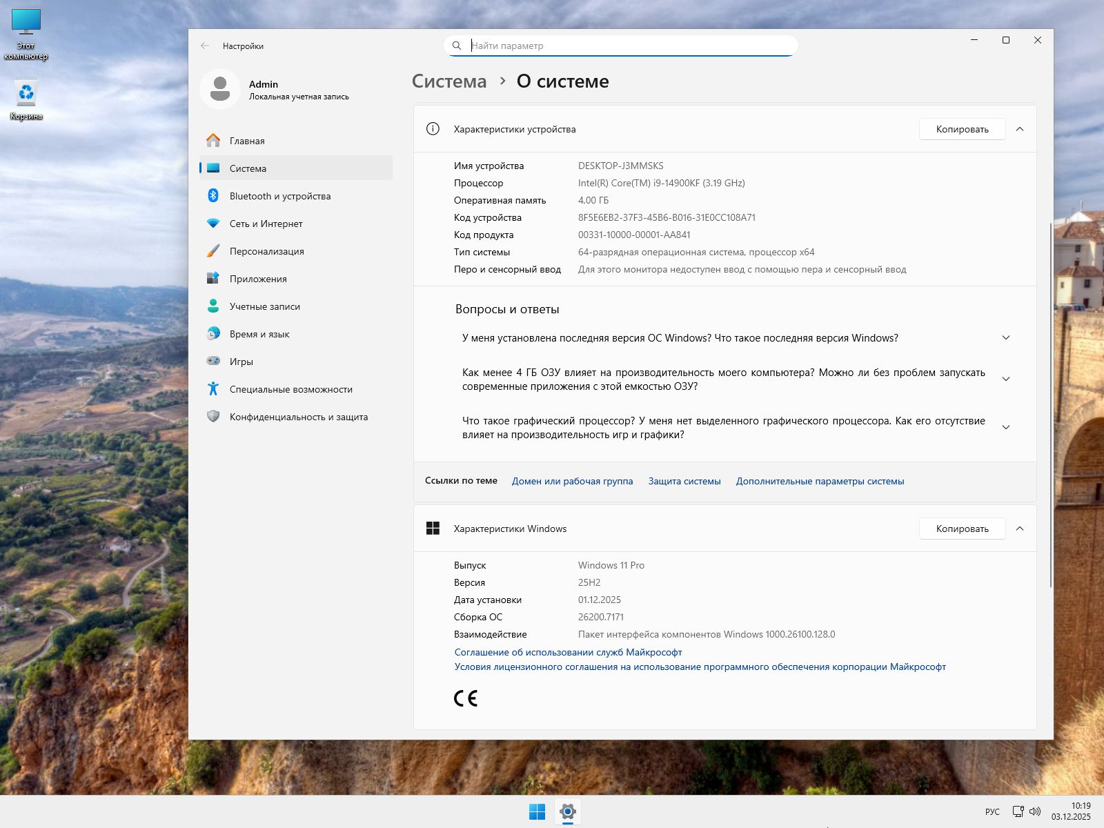 Windows 11 Pro 25H2 x64 без TPM — лёгкая сборка на русском языке