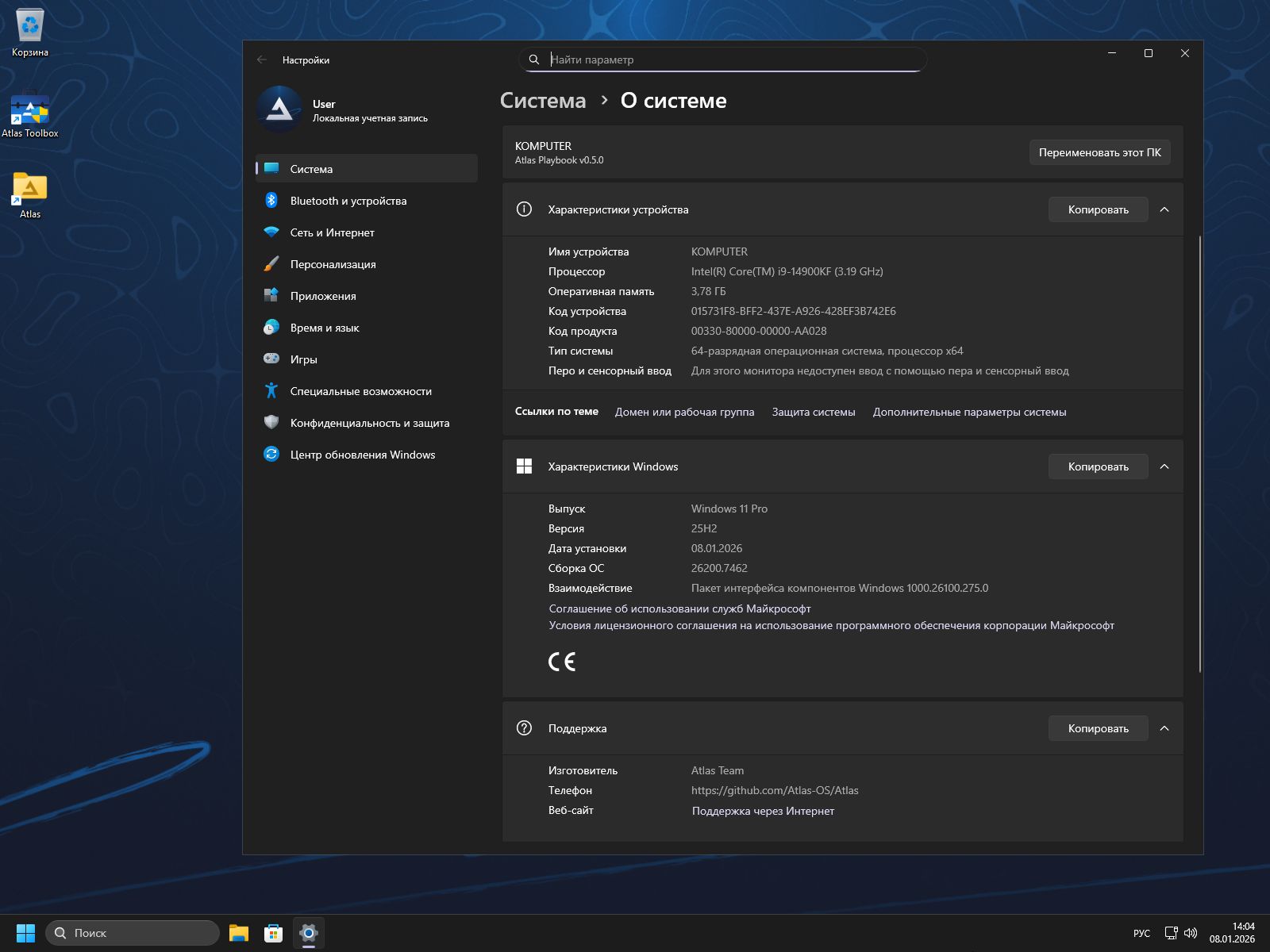 Windows 11 Pro 25H2 64 bit AtlasOS — лучшая сборка для игр 2026 на русском