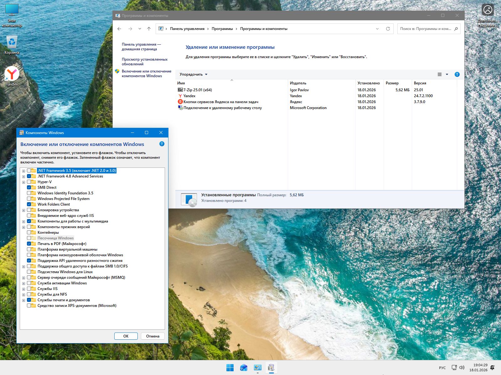 При необходимости использовать старые программы или игры вы сможете отметить галочку на нижней части окна .Net Framework 3.5. Вам доступен редактор реестра, если вы захотите попробовать исправить ошибки предыдущей операционной системы (если она аналогична Windows 11 x64 Pro/Корпоративной). Опытные юзеры смогут внести тонкие правки в конфигурацию еще на этапе предустановки.