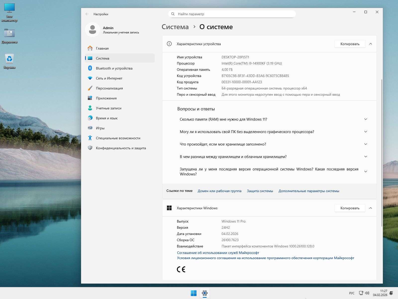 Представляем свежую сборку Виндовс 11 Professional 24H2 без хлама на 64 бита с активацией и правильной оптимизацией для ПК и ноутбука. Автор придерживается философии разумной оптимизации - каждое изменение тщательно тестируется на предмет влияния на стабильность и совместимость с популярными программами. В систему интегрированы необходимые для совместимости с современным софтом и повышения безопасности обновления по Январь 2026 года. Так как все нужное уже встроено в сборку, автор решил удалить ЦО, чтобы последующие апдейты не изменяли идеально настроенную конфигурацию. Это позволяет избежать неожиданных проблем после очередного патча от Microsoft, которые часто нарушают тонкие настройки производительности. Мы тестировали Windows 11 Про 64 бит перед публикацией на сайте, поэтому с уверенностью говорим об отсутствии багов, а также высокой производительности. Благодаря тому, что автор применял исключительно инструменты DISM, что гарантирует отсутствие повреждений файловой системы. Все модификации внесены на уровне компонентов образа, а не через сторонние твикеры, которые могут вызывать нестабильность. Особенностью данной системы является ее продуманность – Bruxer никогда не удаляет и не отключает все подряд, оставляя пользователям урезанный огрызок. Если решите Скачать ISO образ Windows 11 Pro 24H2 Lite x64 облегченная без хлама для слабого железа через торрент или прямой ссылкой, получите доступ ко всему основному функционалу ОС. Поддерживаются все стандартные возможности - от создания виртуальных машин до работы с профессиональным софтом для монтажа, 3D моделирования и программирования. Вырезаны только бесполезные компоненты, мешающие работе и снижающие быстродействие. Например, не работает UAC, заблокирована телеметрия, выключен Защитник. Отсутствуют плиточные приложения и Магазин. В отличие от своих предыдущих релизов, содержащих 3 системы, в этот образ автор добавил одну. Данная редакция предоставляет все необходимые как для корпоративных, так и для бытовых задач возможности, поэтому добавлять что-то еще смысла нет. Помимо апдейтов добавлены библиотеки .Net Framework, необходимые для запуска большинства программ. Встроены как старые, так и самые свежие версии, чтобы и старый, и современный софт, работал без дополнительных костылей. Это особенно важно для геймеров и пользователей профессиональных приложений, которые часто требуют специфичные версии фреймворка. Система отлично показывает себя как на офисных ПК так и на игровых компьютерах. Оптимизация затронула распределение оперативной памяти, приоритеты процессов и работу с файлом подкачки. В результате даже на конфигурациях с 4 ГБ RAM достигается приемлемая скорость работы в многозадачном режиме.