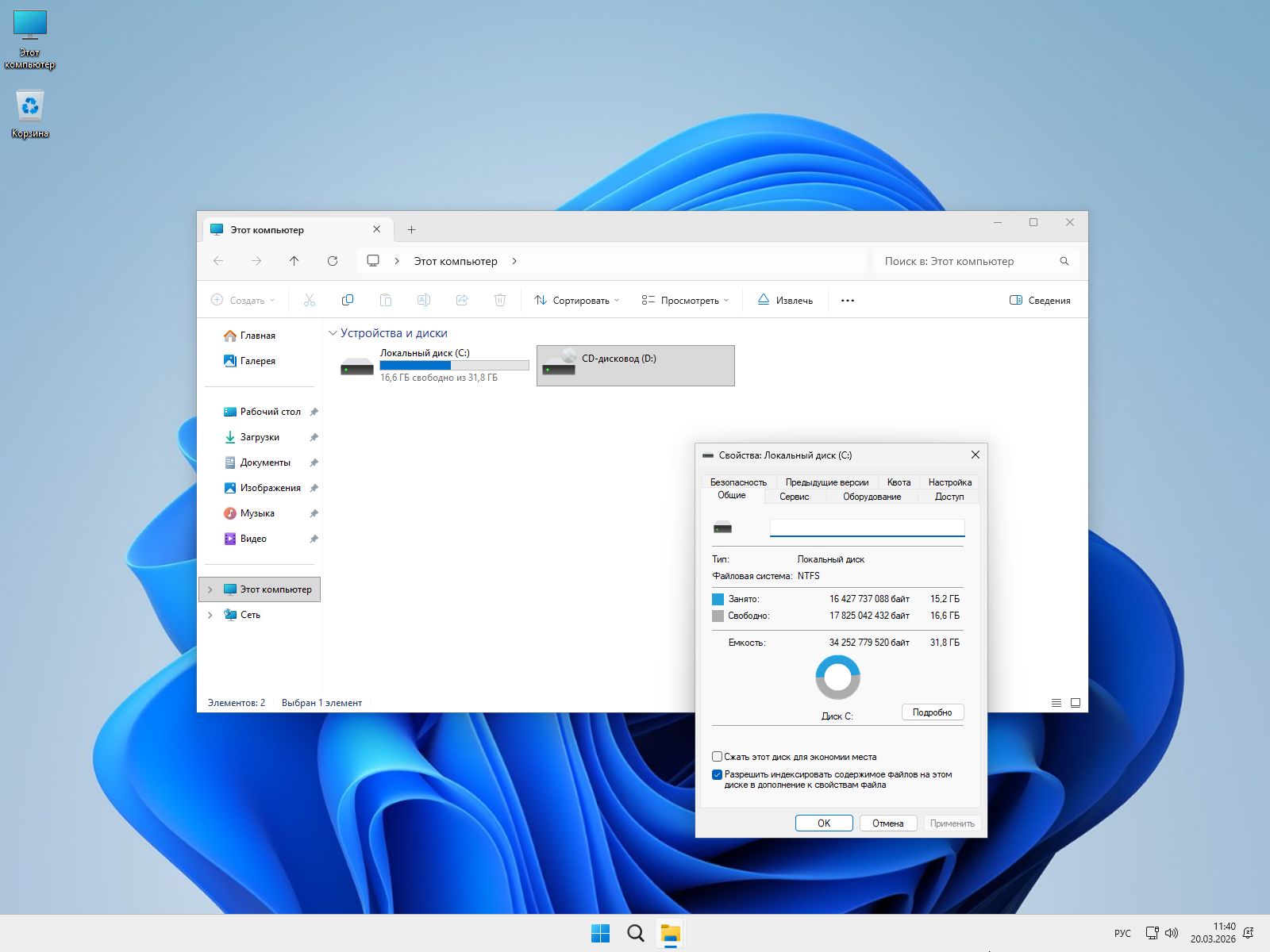 Помимо этого внесены правки в интерфейс: значок «Этот компьютер» вынесен на рабочий стол, Explorer при открытии показывает «Этот компьютер» вместо «Быстрого доступа». Возвращено классическое контекстное меню по ПКМ — без промежуточного урезанного варианта Win11. Стартовое меню, таскбар и файловый менеджер очищены от мусора, а контекстное меню и Explorer получили дополнительные полезные команды.