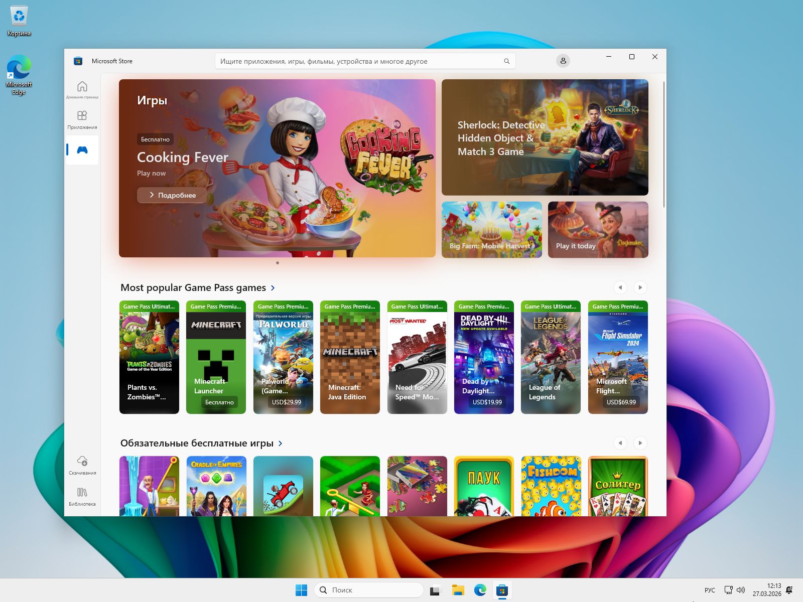 | Магазин (Microsoft Store) | Сохранён и работает штатно |