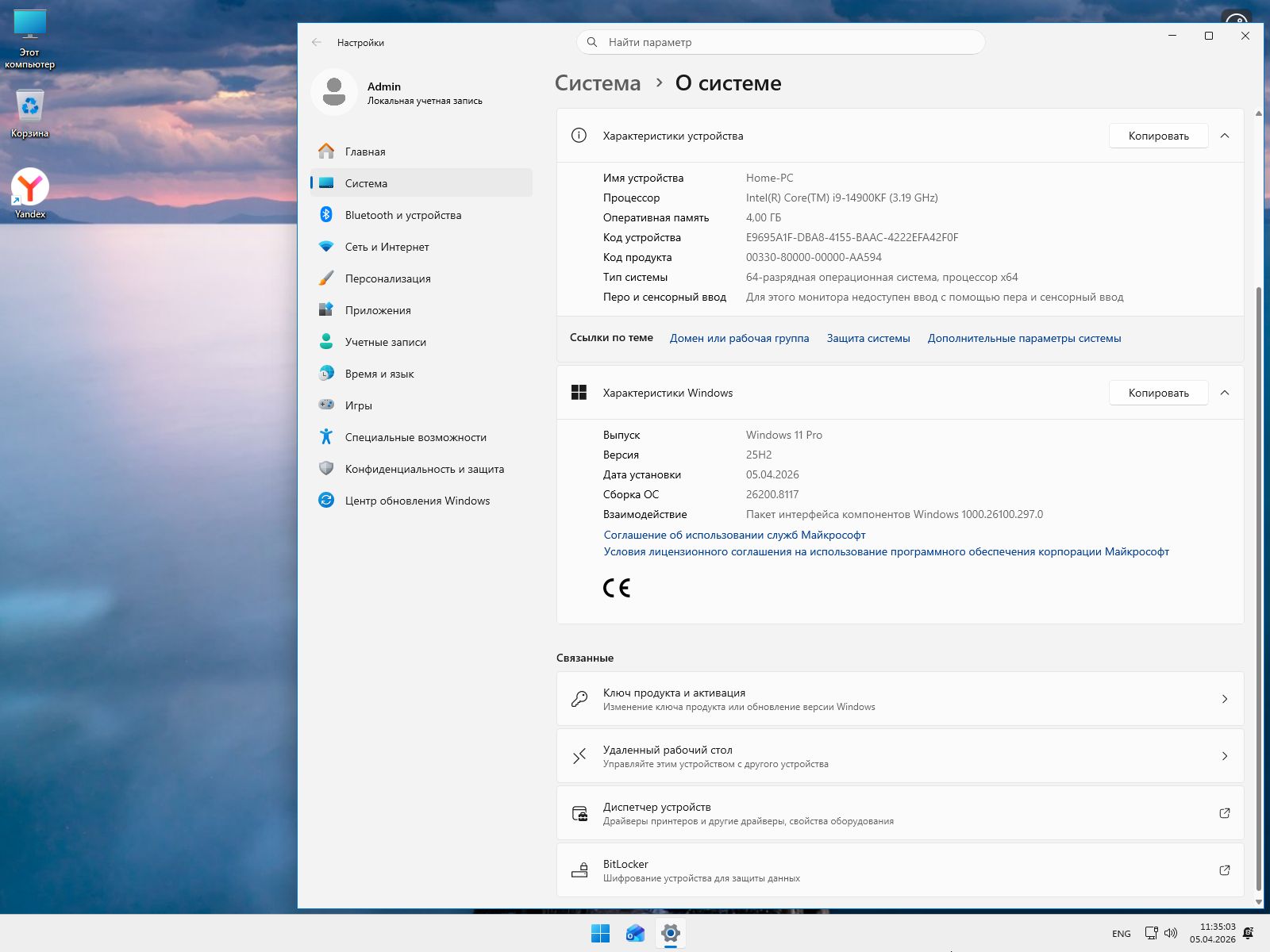 - Версия:26200.8117 - Windows 11 25H2 x64 PRO by OneSmiLe (04.2026)