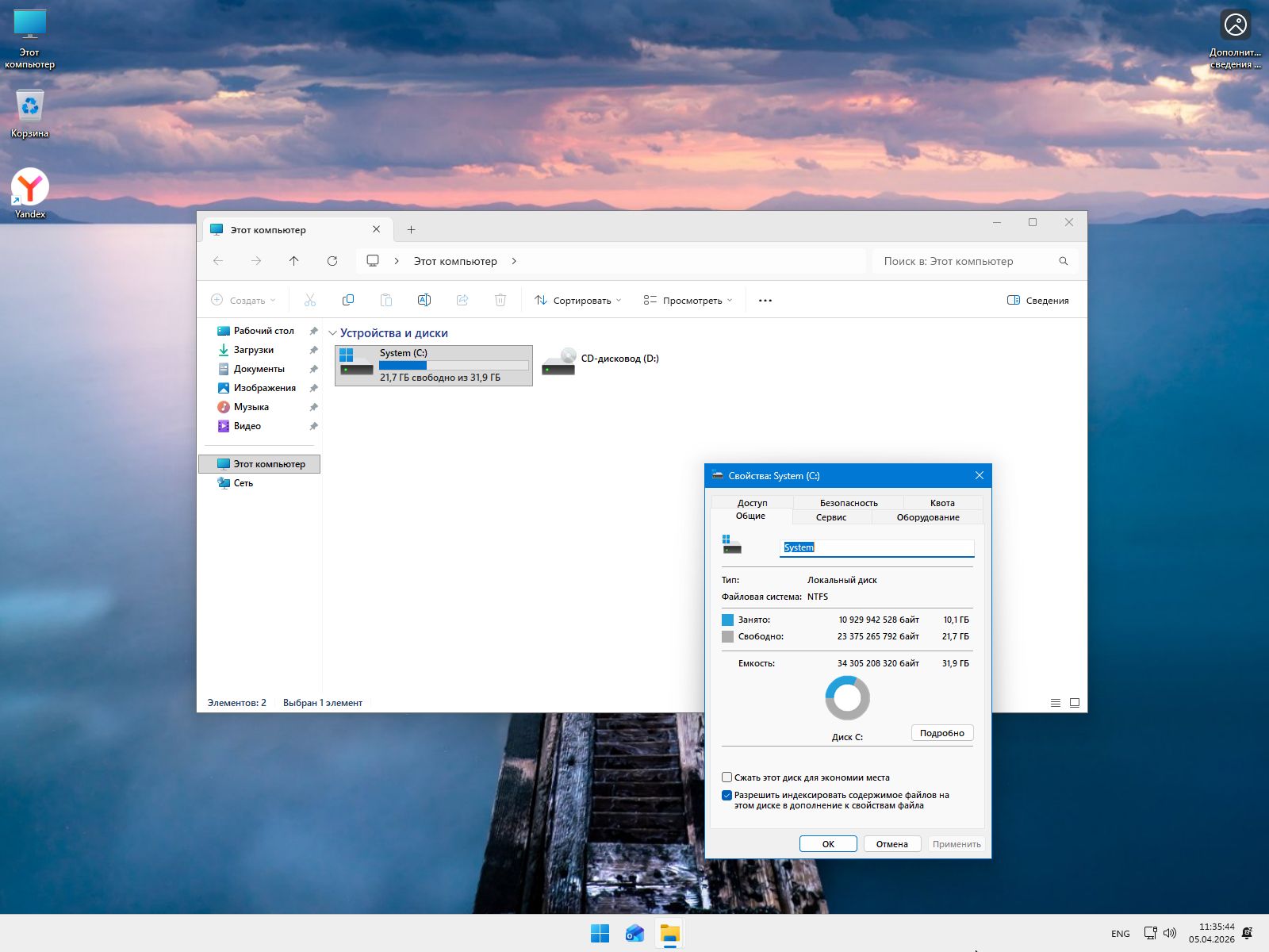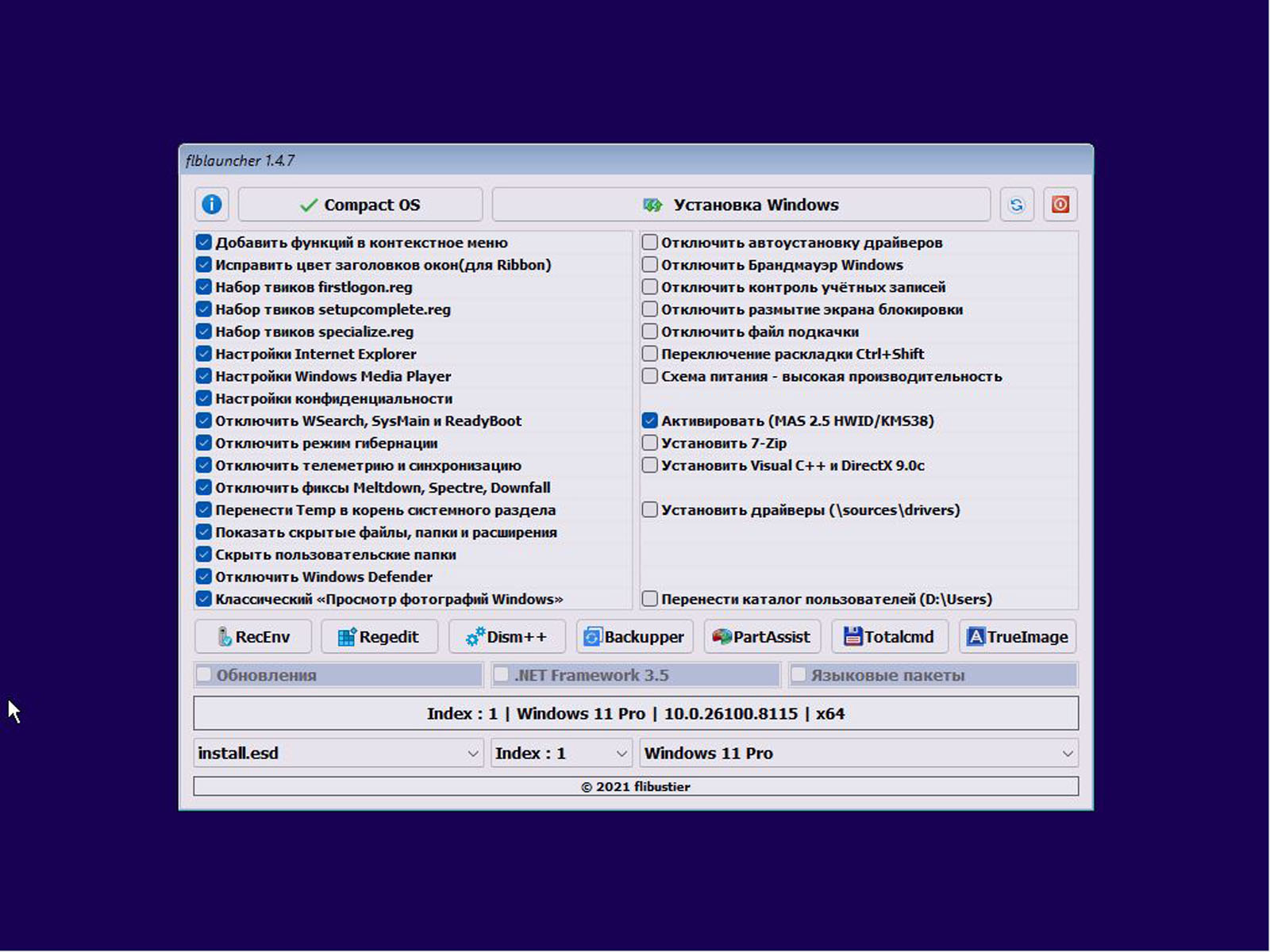 Сборки от OneSmiLe давно знакомы пользователям, предпочитающим получить настроенную Windows с минимальной доработкой после установки. Свежий релиз на базе Windows 11 25H2 (build 26200.8117) выполнен в том же стиле — оригинальный дистрибутив Microsoft, пропущенный через DISM и упакованный в формат ESD для экономии места. Обновления интегрированы по Апрель 2026 года, модерн-приложения удалены, телеметрия вырезана, контекстное меню возвращено к привычному виду. При этом сборка не уходит в крайности: поиск в системе работает (значок просто скрыт с панели задач), а магазин Microsoft Store при необходимости разворачивается одной командой в PowerShell вместе с Xbox. Исходником послужил оригинальный iso-образ ru ru_windows_11_business_editions_version_25h2_updated_march_2026_x64_dvd с лаунчером от Флибустера. В ISO образе несколько редакций, что даёт возможность выбрать подходящую прямо при установке. Вся работа с образом велась через DISM, а финальный install.wim сжат в ESD — на выходе дистрибутив занимает ощутимо меньше места, чем стандартный WIM, что удобно при записи на флешку небольшого объёма. Активатор включён в комплект, никаких дополнительных действий для получения лицензии не требуется. Скачать быструю сборку Windows 11 25H2 без мусора 64 бит PRO на русском можно через торрент программу или напрямую с сервера бесплатно. Проверки TPM 2.0 и SecureBoot обойдены, поэтому образ спокойно устанавливается на оборудование, не попавшее в список совместимости Microsoft. Отдельная деталь, которую стоит учитывать: автор сознательно отключил восстановление системы и удалил WinRE.wim. Это экономит место на диске, но означает, что среда восстановления Windows недоступна — при серьёзных проблемах придётся загружаться с установочного носителя. Из предустановленного софта в образе два приложения — архиватор 7-Zip и Яндекс Браузер. Оба устанавливаются автоматически в процессе развёртывания, так что сразу после первого запуска пользователь может выйти в интернет и распаковывать архивы, не доставая флешку с инсталляторами. Решение практичное: именно браузер и архиватор — это первое, что требуется на свежей системе, а здесь они уже на месте.