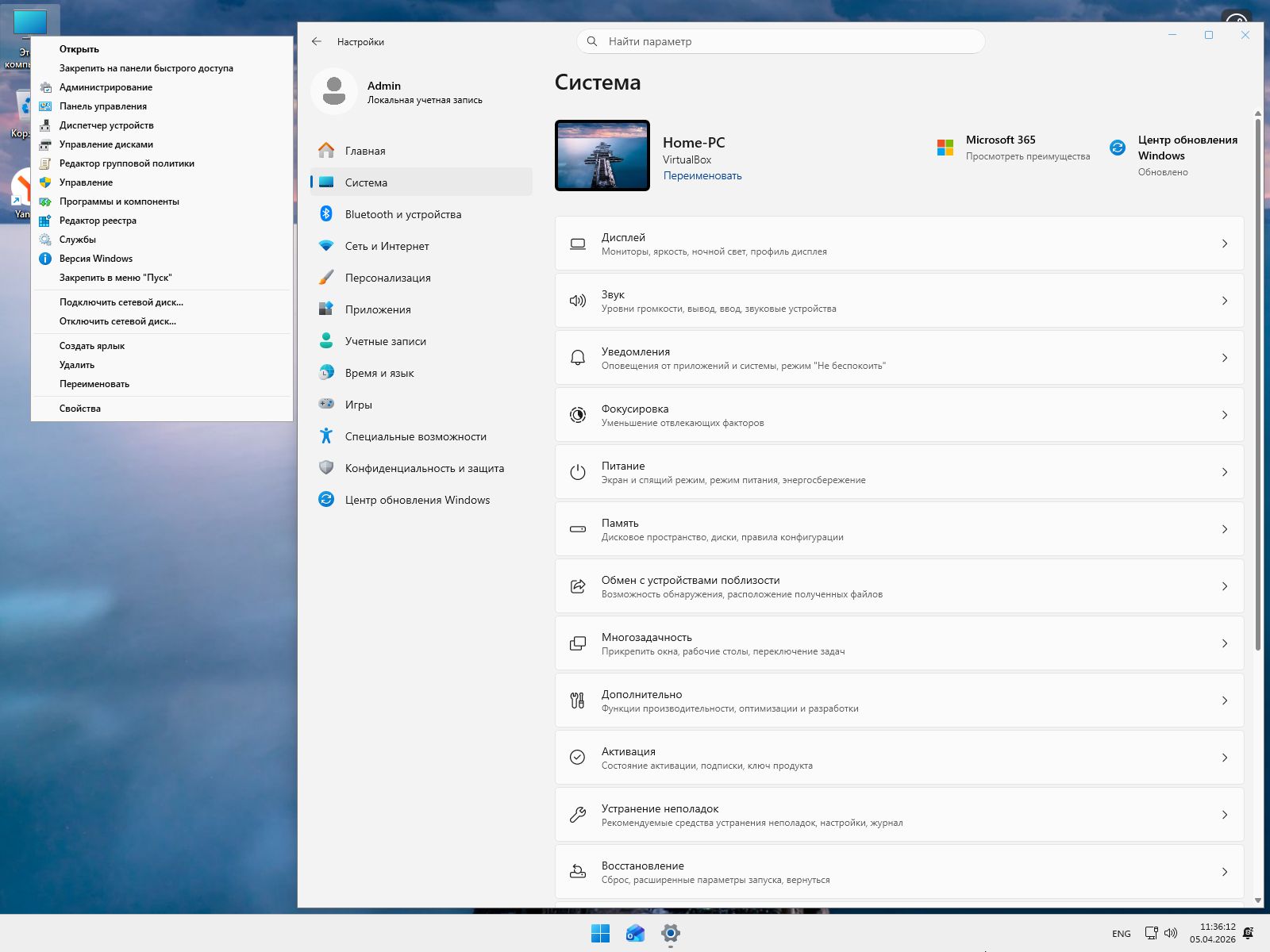 Системные требования: Конфигурация ПК скромная: двухъядерный процессор с частотой от 1 гигагерца или SoC, 4 гигабайта оперативной памяти, от 25 Гб свободного пространства на накопителе. Видеоадаптер — совместимый с DirectX 12 версии при наличии драйвера WDDM 2.0. Дисплей — от 720p, диагональ свыше 9 дюймов, 8 бит на цветовой канал. Наличие модуля TPM и активный Secure Boot значения не имеют — обе проверки обойдены в дистрибутиве.