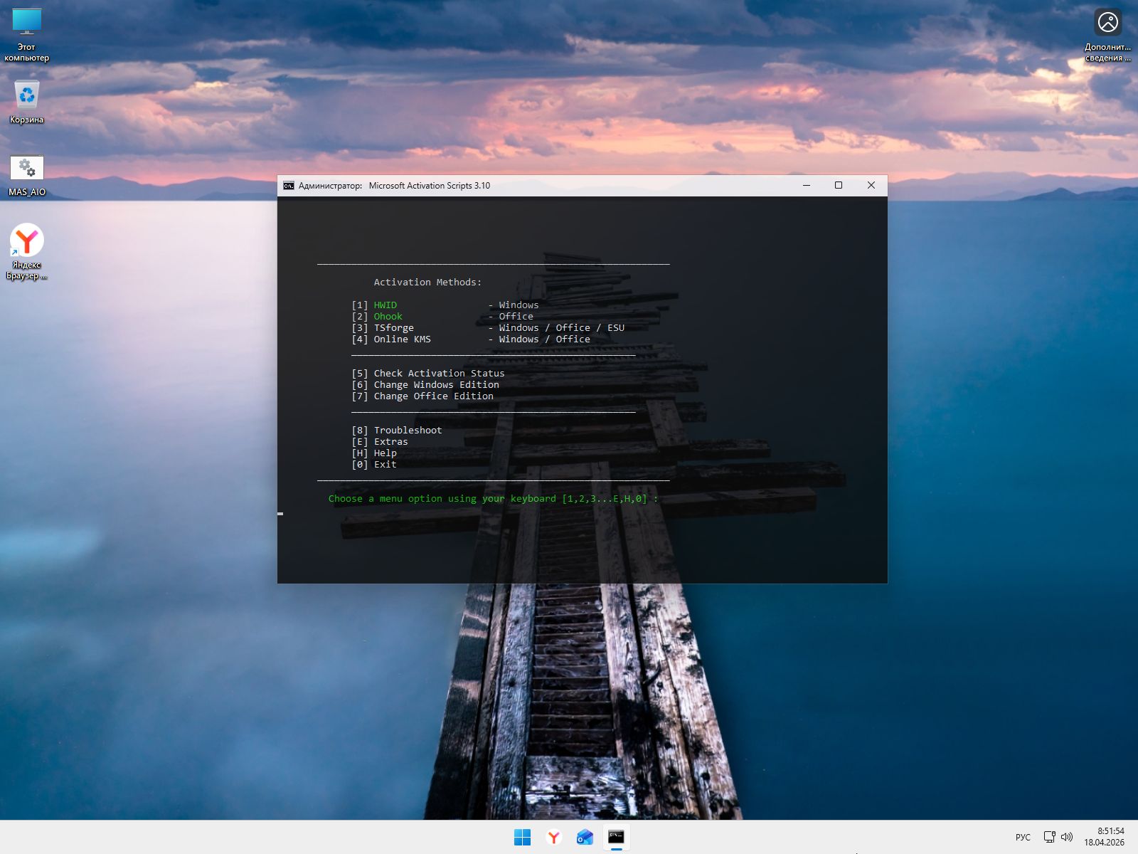 | Активация | Автоактивация HWID/KMS38 — встроена в инсталлятор, требуется интернет для HWID-метода |