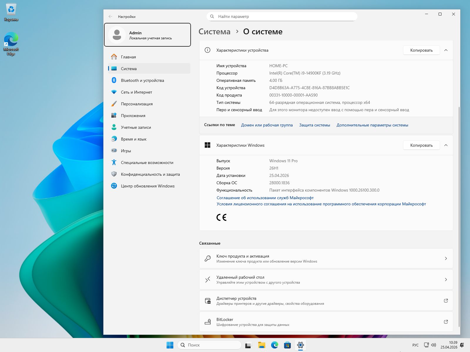 Системные требования: Минимальная конфигурация: 64-битный процессор с тактовой частотой от 1 ГГц и не менее чем двумя ядрами (либо SoC), оперативной памяти — от 4 ГБ, под систему понадобится 64 ГБ дискового пространства. Видеокарта должна поддерживать DirectX 12 при наличии драйвера WDDM 2.0. Монитор — с разрешением не ниже 720p, диагональю свыше 9 дюймов и глубиной цвета 8 бит на канал. По официальной спецификации требуются UEFI с активным Secure Boot и аппаратный модуль TPM 2.0, однако соответствующие проверки отключены прямо в дистрибутиве — установка благополучно проходит и без них.